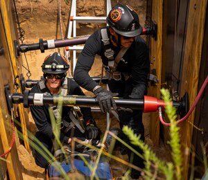 June 24, 2024 Destin, Eglin firefighters train in trench for safe extractions The training demonstration is part on an annual safety day that brings industry and emergency services together to discuss best practices while strengthening capabilities.