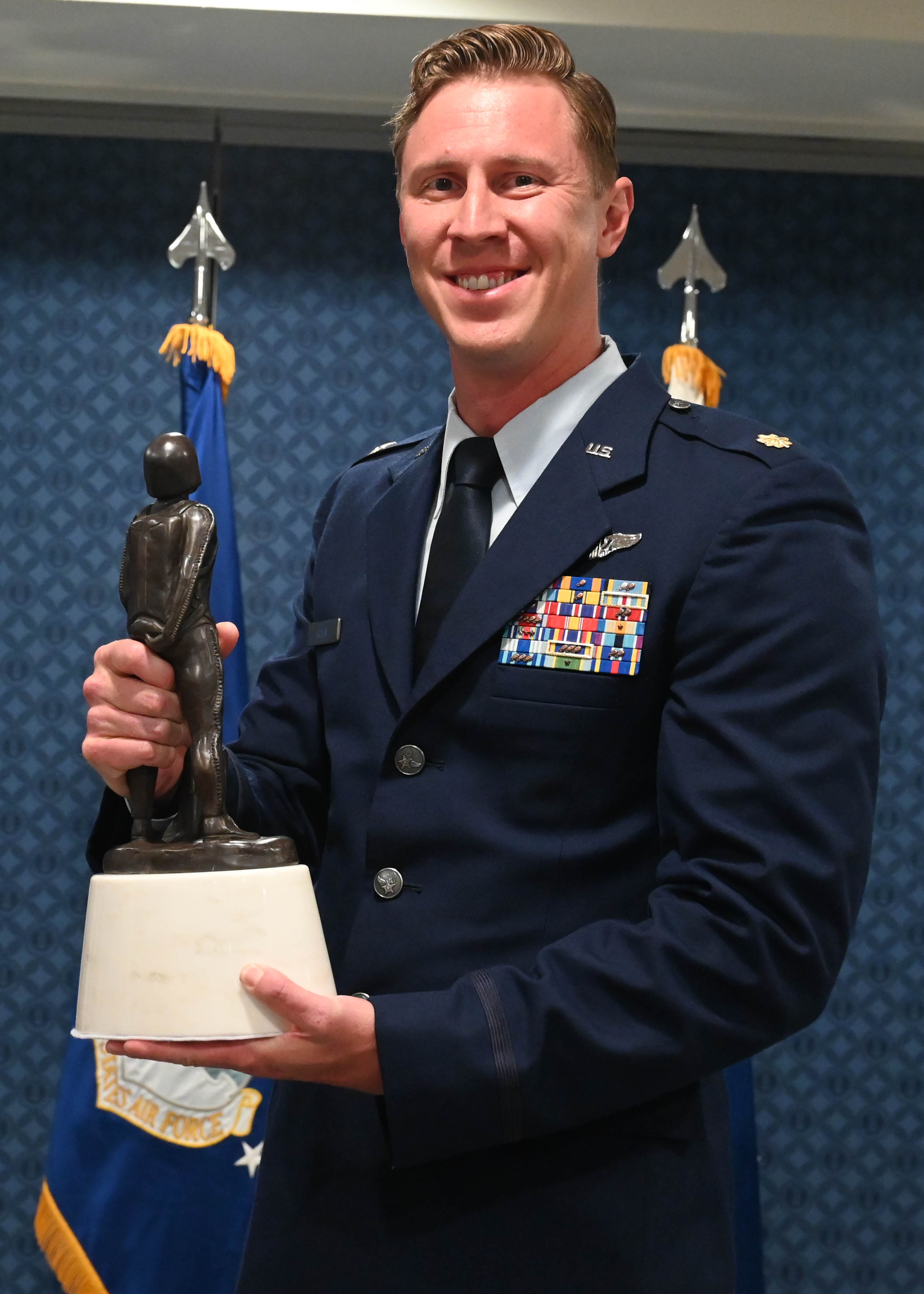 Air Force Chief of Staff Gen. David W. Allvin presented the 2024 Koren Kolligian Jr. Trophy to Maj. Harrison M. Green during a ceremony held at the Pentagon, Sept. 16.