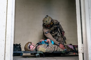 Sparky the Fire Dog interacts with children at Hurlburt Field, Florida, March 20, 2026. The Exceptional Family Member Program partnered with 1st Special Operations Wing firefighters to create an interactive experience for Air Commandos and their families to learn about fire safety. The EFMP is a